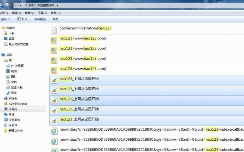 各位大神,我的搜狗浏览器和IE浏览器均被流氓网站(http://www.hao123.com/?tn=97473572_hao_pg)劫持,试过网上各种方法,均无效,另外我想删除C盘关于这个网站的所有东东,发现点右键,只有删除这一个选项,且无法删除,好奇怪,另外也不出现可以用360强力粉碎的操作选项,我不想重装系统,主页还是我之前设置的主页,关键是每次打开浏览器就出现这个网页,心烦呢,希望能够解决谢谢各位啦 Snap1.jpg |