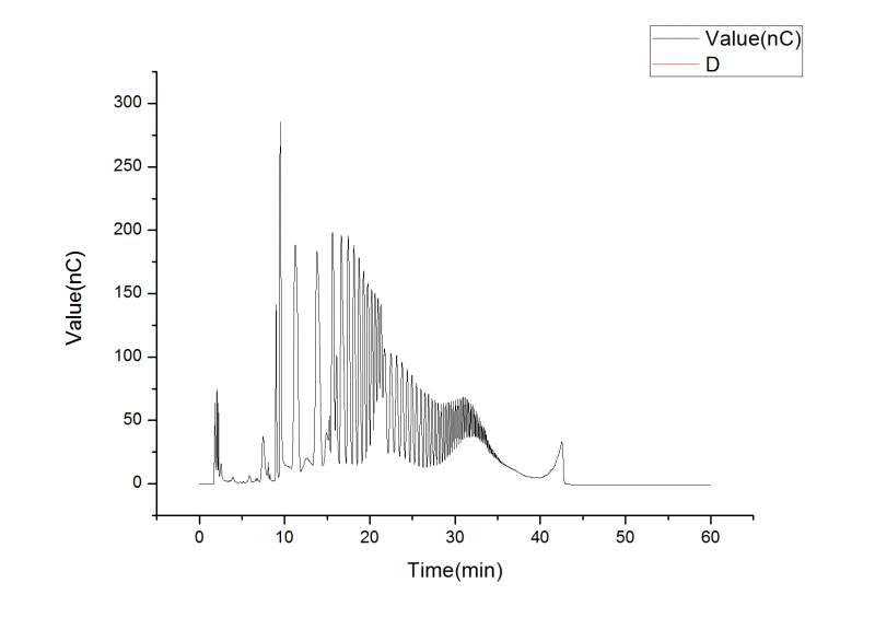 原料是淀粉,做了阴离子交换色谱,结果是以时间为横坐标的色谱图(如图),但是文献里的结果都是关于聚合度。想问下各位大侠,怎么分析这个图谱数据啊,如何根据这个图谱数据得出聚合度分布 谢谢大家哈~急求~ N.jpg |