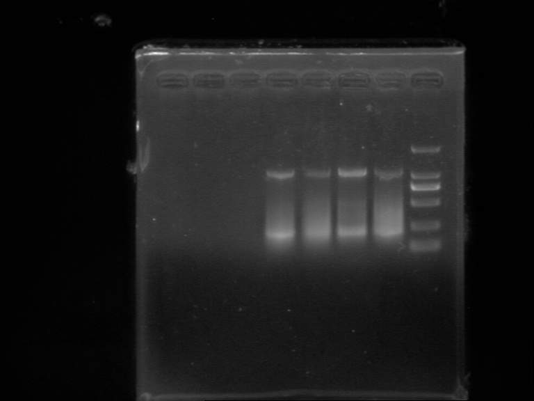 已知基因序列,以该基因的两端作为引物序列进行扩增,预计扩增出来的目的基因大小为2600bp。结果扩增片段大小为约为1200bp。