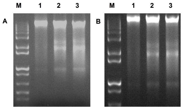 我的审稿意见回来,其中一条是:DNA ladder formation by the fatty acid was not so clear but smear-like. 但我看到文献做DNA fragmentation assay的图都差不多这个样子, 例如: http://www.intechopen.com/books/ ... nhance-invasiveness http://mct.aacrjournals.org/content/3/3/271/F1.expansion 怎么说我的是smear-like呢?我该如何回答?? 大家帮忙分析,谢谢,图如下: Figure 1.jpg |