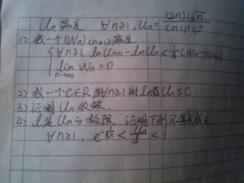 ,可以看出序列Un是单调上升的. 利用不等式: ln(1+x) < x 当 0<x, 得到