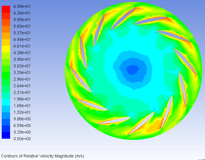 请问,模拟叶轮后处理时,叶片表面的相对速度为什么会那么大啊?见图