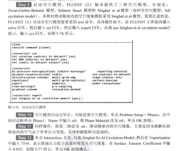 做书上一个流固耦合的轴承例子,里面包含启动空穴设置问题,按书上输入命令以后 出现的最后一句和例子中不一样,不能选用singhal模型,求大神指教 先谢谢啦! 第一个图片是书上的,第2个图片是我输入后的.