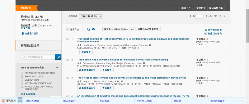!根本找不到”分析检索结果“的选项,最后当然是无法得知哪个杂志的相关课题文章多少什么的,对于我这个菜鸟来说已经晕了