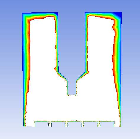 这是我使用Fluent做的一个模拟,得到的速度云图如图所示,不知道为什么会出现这种情况,哪位大神可以帮忙分析一下?多谢了。