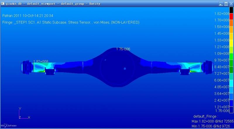 我是在HM中做前处理 载荷用最大的力 导入patran里面 用nastran求解 结果