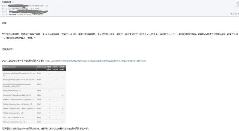 | 我的Accelrys Discovery Studio 2.1 版本以前用在WIN7的机器上没有问题,最近换了新的机器,WIN8系统,protocols运行起来后就一直running,停留在step1,时间已经远远超出正常的运行时间,是哪里出了问题呢?望高手指点一二,多谢! |