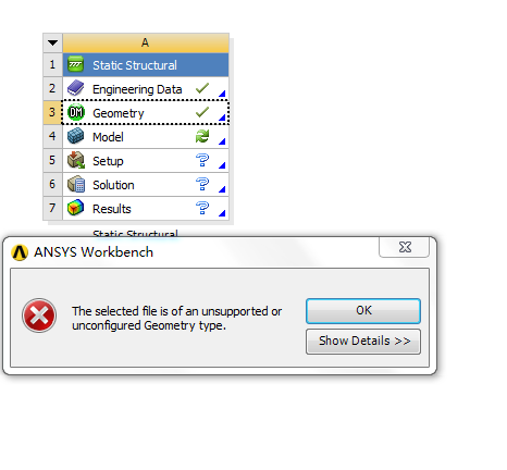 以前在workbench12做过参数化建模,将solidworks文件修改尺寸参数名称直接导入即可。为什么在14中不可以直接导入solidworks文件?每次导入都说失败,不想导入x_t格式, 因为那样无法将参数化尺寸导入进来。图片1为12导入结果,也是想要导入的形式,图片2为14导入同一文件的结果 求高手帮忙解决,先谢谢了! 1.jpg 2.png |