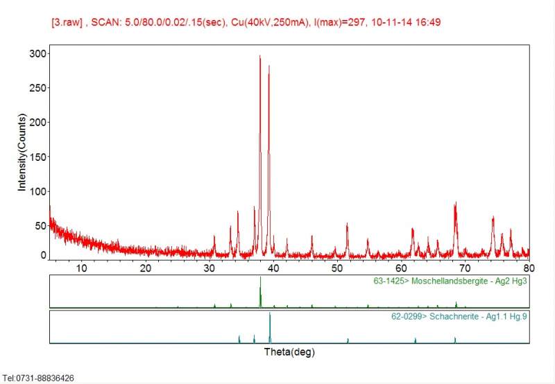 如图,是银汞齐的XRD图谱,通过两个图能得出什么结论,两个图所加的汞的量不同