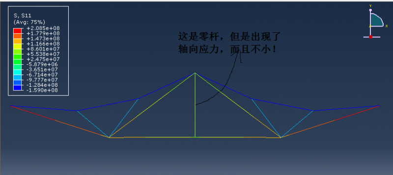 用abaqus模拟了桁架,但是发现零杆上有轴力,而且不小!!已有3人参与