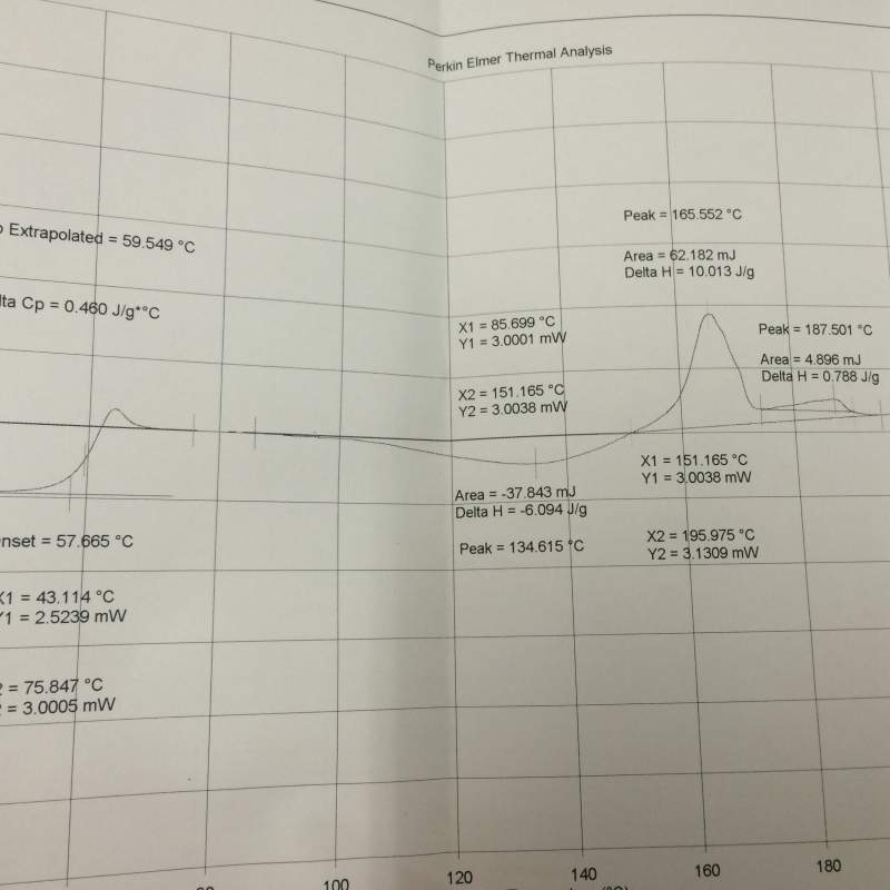 购买了一些说明是完全无定型的聚乳酸,但是做DSC的时候还是出现了冷结晶峰和熔融峰,这是不是确实说明是存在结晶行为呢, 测试条件为快速升温消除热历史,保温,快速降温到室温,保温,10℃/min升至250℃, 有人可以解释一下吗? IMG_4858.JPG |