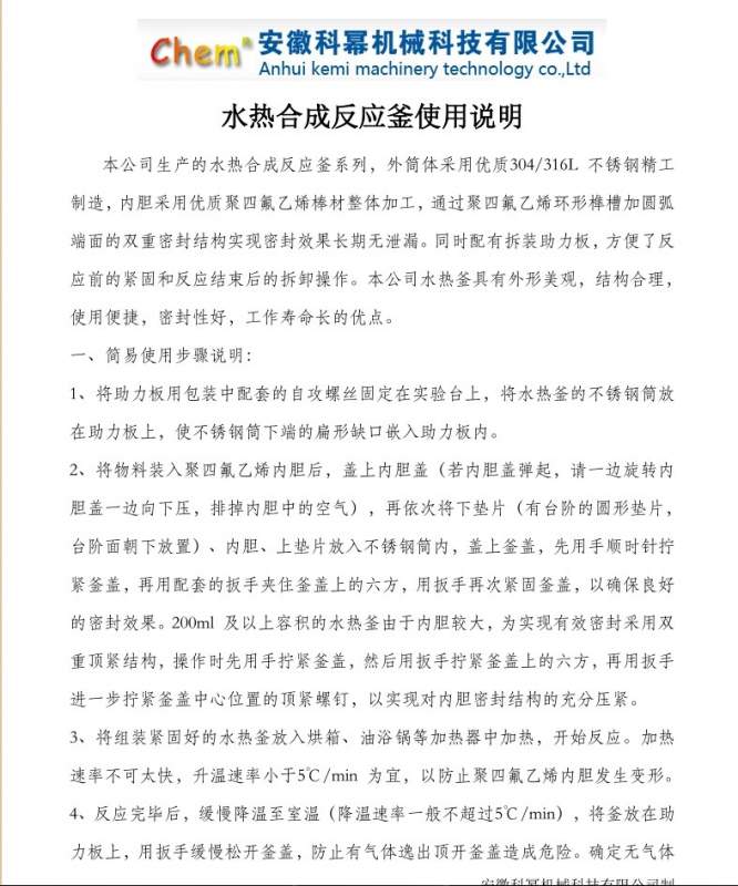 | 请教:内衬聚四氟乙烯反应釜:100-200℃水热反应时液体体积占内衬体积最大可达几分之几? |