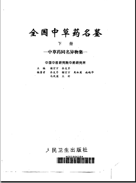 【转载】[全国中草药名鉴(下册)中草药同物异名集].中国中医研究院中药研究所.扫描版