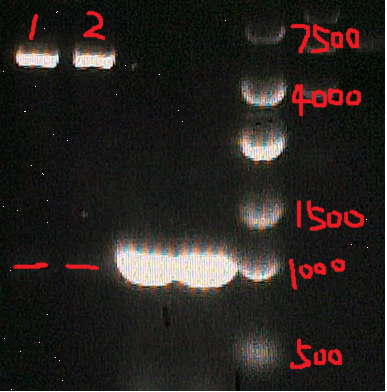 如图所示,line 1和2 是质粒和片段(图片不清晰,用红线代替)连接后的酶切验证 质粒大小为4570bp 片段大小为750bp 因为把连接好的质粒送过去测序,发现正向引物F(片段的)测序无信号,反向引物R(片段的)测序是正确的。 所以,想酶切验证一下,发现酶切下来的片段大小不对,酶切的片段大小约为1000,而目的片段为750bp。 哪位大神告诉我是什么原因啊? 图片1.png |
