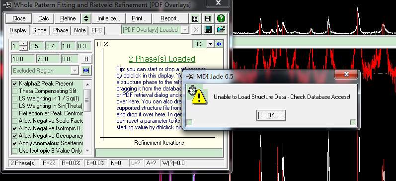JADE6中在打开WPF refinement时出现:unable to load structure data-check database access!时怎么回事? 2{I1Q}0H3MMD{OPE2T)J@]D.jpg |