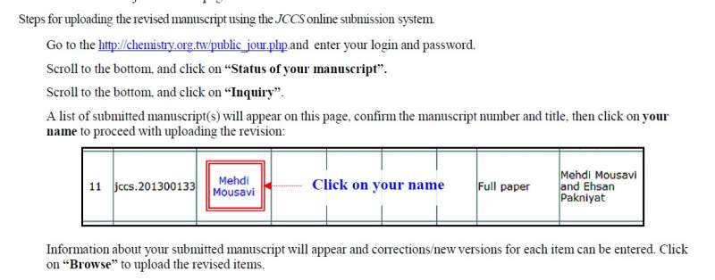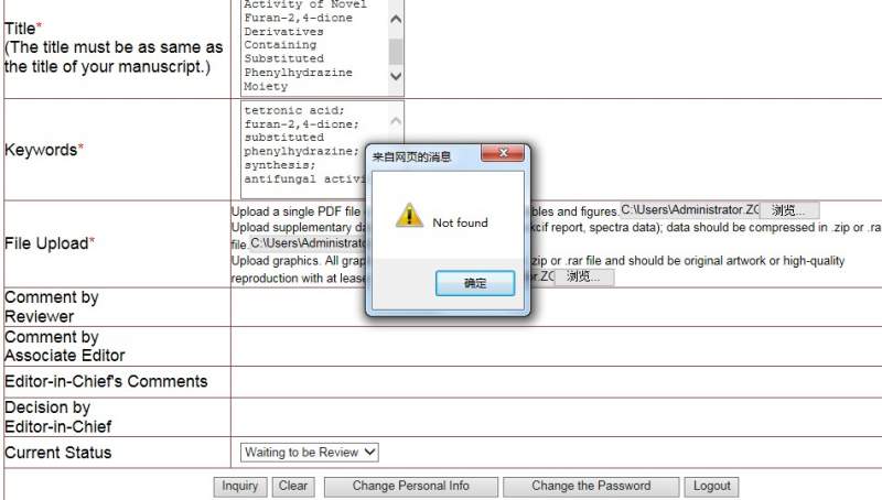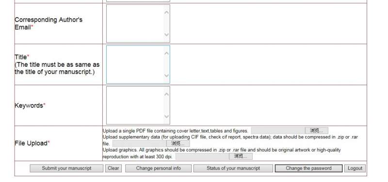 Journal of the Chinese Chemical Society 在线投稿,按照guideline内的指示: (Go to the http://chemistry.org.tw/public_jour.php.and enter your login and password. Scroll to the bottom, and click on “Status of your manuscript”. Scroll to the bottom, and click on “Inquiry”. A list of submitted manuscript(s) will appear on this page, confirm the manuscript number and title, then click on your name to proceed with uploading the revision:) 登陆在线投稿,注册了,登陆后第一页填了和没填直接点“Status of your manuscript”各试了一次,按“Status of your manuscript”,进入下一页,然后又填了一次,按 “Inquiry” 但是总是出现"not found" 怀疑可能的问题 (1)开始是周末填的以为网站不工作(有点傻),周一弄还是不行 (2)浏览器问题,开始用360,后来用IE,结果IE的好处是反应了好大一会,然后依然是"not found" (3)怀疑,难道不接受大陆的投稿?Journal of the Chinese Chemical Society 在台湾 请各位投过稿的大神指导下,小弟感激不尽,万分感谢 ![]() 1.jpg 2.jpg 4.jpg 5.jpg |