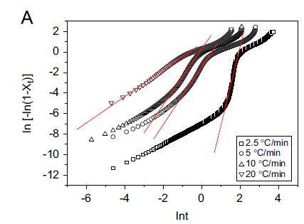 求助!Avrami方程用Origin 如何作图求斜率和截距。谢谢!