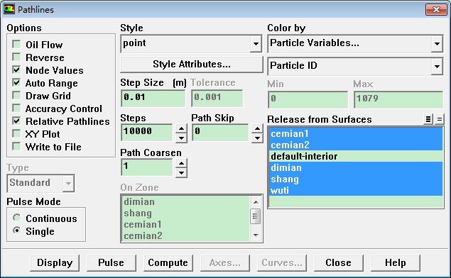 模拟附有灰尘的物体上升,灰尘扩散的问题,物体以0.5m/s的速度上升,计算了稳态的连续相,非稳态追踪颗粒,双向耦合,每计算100步气相,释放一次颗粒,每个颗粒的最大迭代步数也调大了100倍,迭代步长0.01s,步数2000步,迭代完追踪的颗粒越来越少了,怎么回事呢? Advancing DPM injections .... number tracked = 2766, escaped = 32, aborted = 0, trapped = 0, evaporated = 0, incomplete = 0 `````` Advancing DPM injections .... number tracked = 2681, escaped = 30, aborted = 0, trapped = 0, evaporated = 0, incomplete = 0 `````` Advancing DPM injections .... number tracked = 1734, escaped = 6, aborted = 0, trapped = 0, evaporated = 0, incomplete = 0 连续相的迹线始终有未完成的,已经把step size改小到0.01m,steps改大到10000步,还是有4条未完成??? number tracked = 1080, escaped = 1076, aborted = 0, trapped = 0, evaporated = 0, incomplete = 4 http://image.keyan.cc/data/bcs/2 ... _1413771184_457.png http://image.keyan.cc/data/bcs/2 ... _1413771519_308.png 图片1.png 图片2.png |
