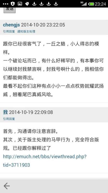 该 ID 因对版主管理不服,在其后的站内交流中辱骂版主。 https://muchong.com/bbs/viewthread.php?tid=8024947 区长与其沟通交流时对方仍不悔改,发出侮辱性言语。 根据版规https://muchong.com/bbs/viewthread.php?tid=6306285 处罚文献求助版永久禁止访问!特此声明! |