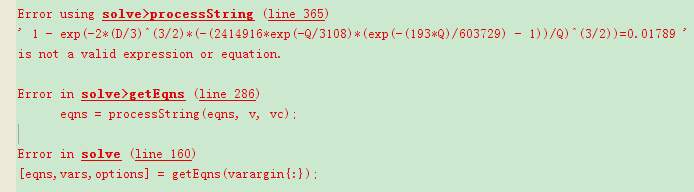 matlab解二元方程组,错误提示,求解决方法已有2人参与