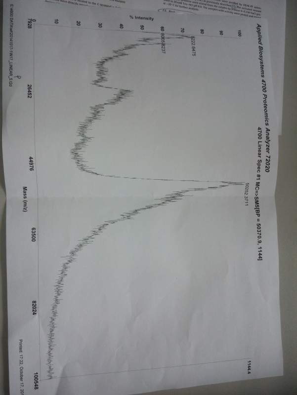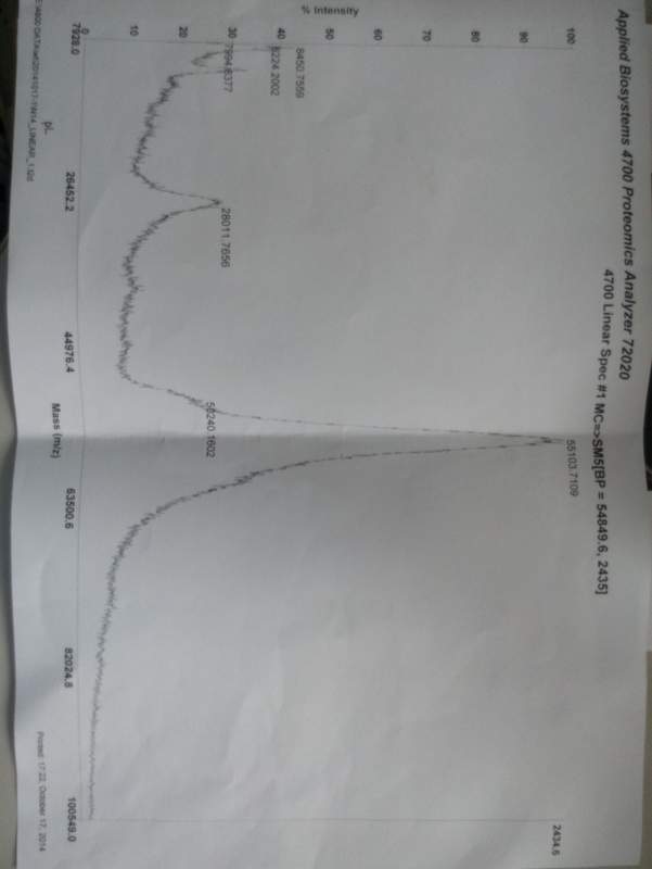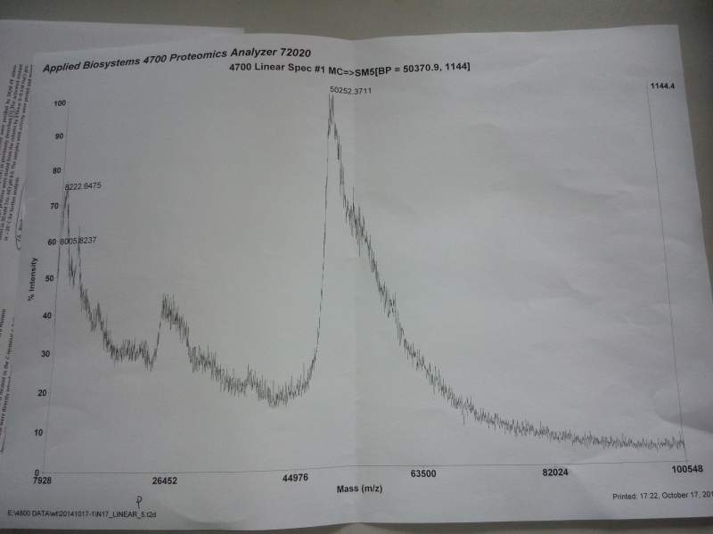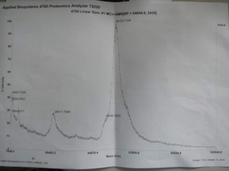 求大神帮助解析tolf分析蛋白分子量的图谱~~