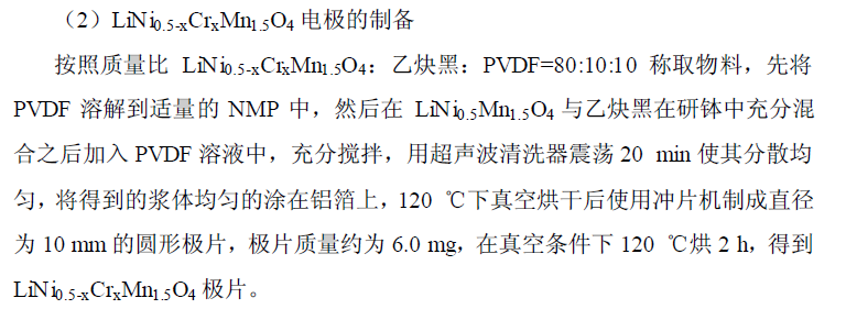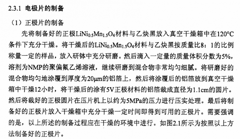 高电压正极材料镍锰酸锂(LiNi0.5Mn1.5O4)正极材料极片制备方法讨论