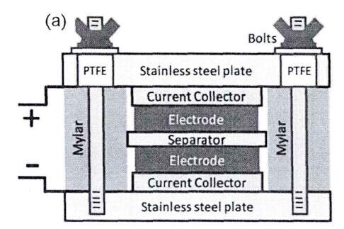 一直用的三电极的,直接三个电极放电解液里面就好了,这个两电极怎么看文献像是组装成电容器期间的,有隔膜,又有什么两片塑料夹片,这个怎么做啊???