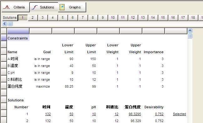 一般情况是选第一个。这些方案都是根据拟合的方程,还有你设定的范围,优化出来的。这么多选择是说这些都是符合你的要求的。一般选择最前面的。还需要去验证,实验值和理论值的RSD