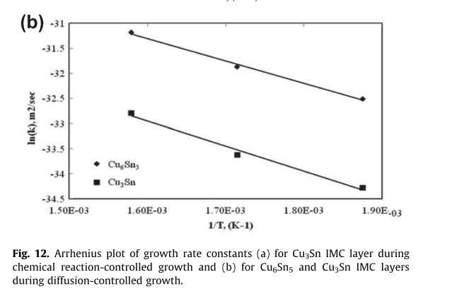 该图是如何测得阿伦尼乌斯的增长速率常数(纵坐标),从而得到其斜率即激活能,