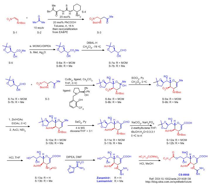 抗流感药物扎那米韦,拉尼米韦和CS-8958的合成已有3人参与