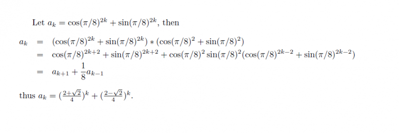 刚刚的那个帖子怪我没有说清楚,http://muchong.com/bbs/viewthread.php?tid=8070248 这里重新发帖提问 表达式: 刚才那贴的朋友给的解析表达式: 这个我用不上,我需要的是分数形式的表达式,如下面我算的前几项: 我算了前几项,1, 3/4, 5/8, 17/32, 29/64, 99/256 麻烦大侠再次出手,多谢了! |