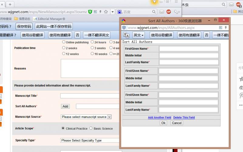 各位大神,小弟有一篇小文章欲投World Journal of Gastroenterology,请问该杂志是否允许共同第一作者,我在杂志社官网找了半天也没有发现什么规定,以前听谁说过貌似不可以,而且在官网的submission 系统里也没有发现提示共同第一作者的,有哪位大神投过,请赐教。 添加作者.jpg |