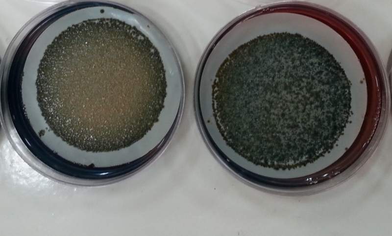 求助!!用滤膜法测大肠杆菌24小时候后为什么培养基整体变蓝,而且滤膜上是厚厚一层蓝绿色物质,不太像菌群……不知道是什么……第一次测还好好的,第二次开始就这样了,求高人指点!
