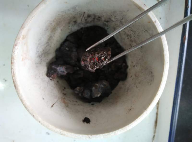 锰锌铁氧体烧完出马弗炉,感觉像是烧火的炭那种红色状态,我用的是溶胶凝胶法制备,反应至胶状,烘干之后放进马弗炉烧,烧完是图中那种状态,是为什么呢?请教大神 IMG_20141028_152255.jpg |