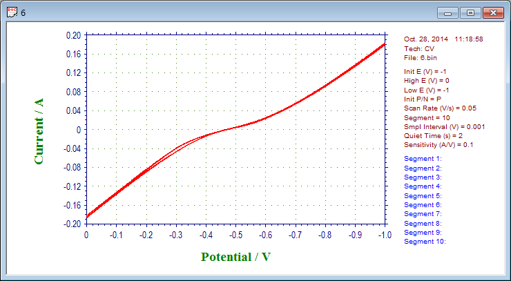这是我做的一个循环伏安图,是不是没有峰啊?可能是什么原因呢?