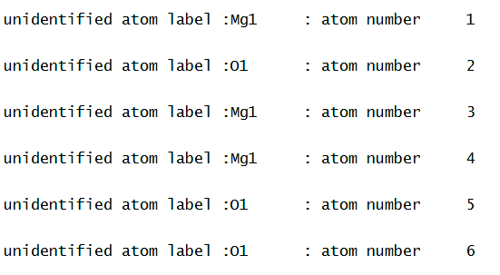 在优化氧化镁硬球模型运行的时候,提示未指定原子标签,查了下手册的错误提示也没看明白怎么修改,我把报错图片和文件传上来了,还望专家指点,有时间的话再帮我看看我的输入文件是否正确,全都是自己看着说明来摸索的,很多错误,已经修改过几个了,但还是不能顺利的运行。在此谢过了。。。 3.gif 2.gif 1.gif |