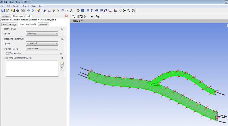 如果把血管为刚体的话,那是不是只要定义血液流体区域就可以了,然后在CFX-Pre中给流体边界定义一个Wall Boundary,Mesh option 选项为 stationary. (见附件图)