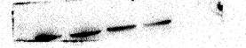 请各位帮忙看一下今天跑出来的条带,有几个问题不甚理解:1,为什么目的蛋白是朝下偏,内参往上偏?是浓缩胶有问题还是分离胶有问题呢?这次拔下梳子时候,孔的确不是长方形,上面的变行了。我先恒流20MA42分钟,再恒压100V一个半小时。2,为什么目的蛋白第一个孔一半颜色浅一半颜色深?是不是转膜时候夹子没有夹好,还是有气泡?还是孵育抗体的时候没有接触完全呢?3,背景有点脏,怎么办啊?我是用5%牛奶封闭一个多小时,另外用的TBST洗涤。求各位多多指教呀,本人刚开始做,很多需要求教。