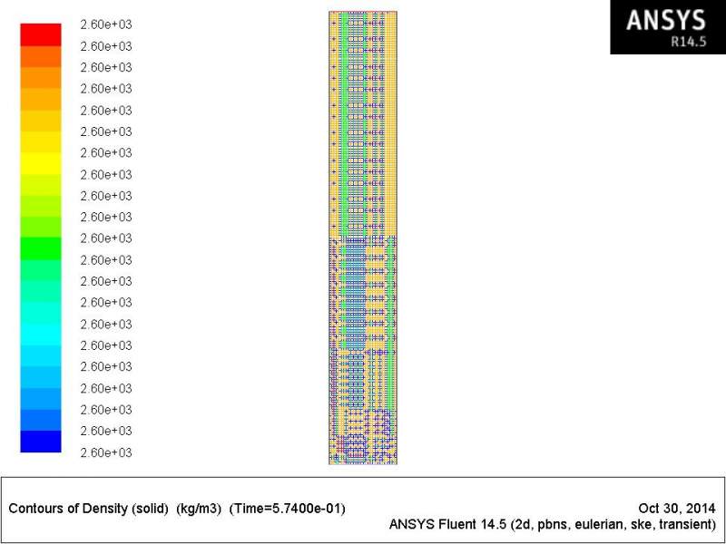 小弟刚学fluent,想模拟流化床的密度云图,可是按照案例上的做法,做出来的密度云图是附件上的,感觉错了的样子,请各位大神看看,应该怎么显示流化床的mixture相的密度云图