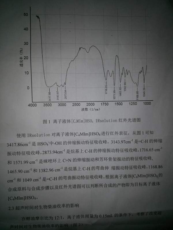 今天测了一个自己合成的物质,用的是红光谱分析仪,得到一张谱图,没有做平滑处理,并查到了一张谱图,希望知道的人帮我分析一下,这两张图是不是代表同一种物质([C4MIm]HSO4物质),谢谢大家! (我要合成的是离子液体) 我是新手,希望大家帮助我一下,谢谢! 红外光谱图.jpg 文献中的离子液体红外光谱图.jpg |