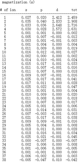 【求助】VASP OUTCAR中关于磁矩的部分