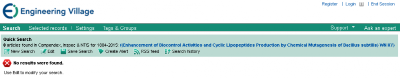 单位要填表,需要CSI文章的检索号,我上不了web of science,请大家帮我查查,非常感谢! Xing-Yu Li, Jing-Jing Yang, Zi-Chao Mao, Hon-Hing Ho, Yi-Xing Wu, Yue-Qiu He. Enhancement of Biocontrol Activities and Cyclic Lipopeptides Production by Chemical Mutagenesis of Bacillus subtilis XF-1, a Biocontrol Agent of Plasmodiophora brassicae and Fusarium solani, Indian Journal of Microbiology, 2014, DOI 10.1007/s12088-014-0471-y |