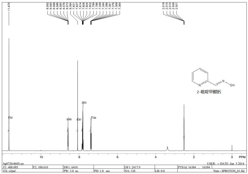 请各位大神帮忙分析两个核磁氢谱~!毕业论文需要书面表达这两个核磁谱图,耦合常数什么的自己根本不懂,希望大家伸出援手~~化合物结构和对应的谱图一并贴出来,谢啦~~~~![]() ![]() 2-吡啶甲醛肟四丁基铵盐.jpg 2-吡啶甲醛肟.jpg |
