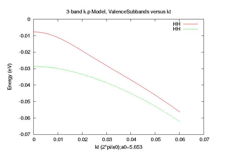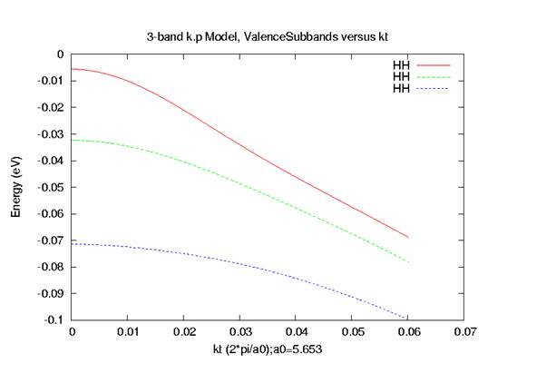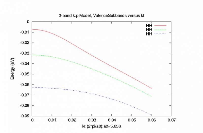 我用软件模拟了InGaAs/GaAs单量子阱的价带能带图,分别取In=0.1、0.15、0.2三种条件,模拟过程用了价带混合模型。结果发现In=0.1的时候,价带只有2条分离的重空穴带;In=0.15和0.2的时候,价带有3条分离的重空穴带,这是为什么?而且在这个模拟结果中没有显示轻空穴带,是为什么?有哪位知道的啊,请指教哈哈![]() in=0.1.jpg in=0.2.jpg in=0.15.jpg |