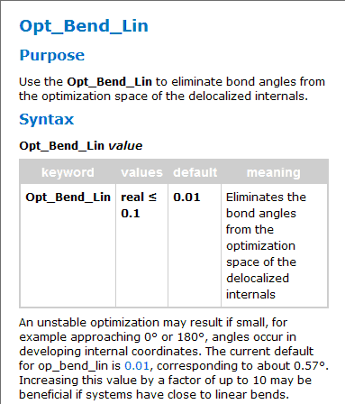 最近用MS中的Dmol3模块做Au10的优化总失败,查Help中看到如果优化过程中角度接近180°可能会失败,在这种情况下就要用Opt_Bend_Lin keyword,然而具体怎么查或更改就不会了。求教各位大神帮忙解决。