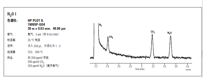 色谱柱HP-PLOT-Q分离甲烷、二氧化碳、氧、氮气、氧化亚氮的效果如何?