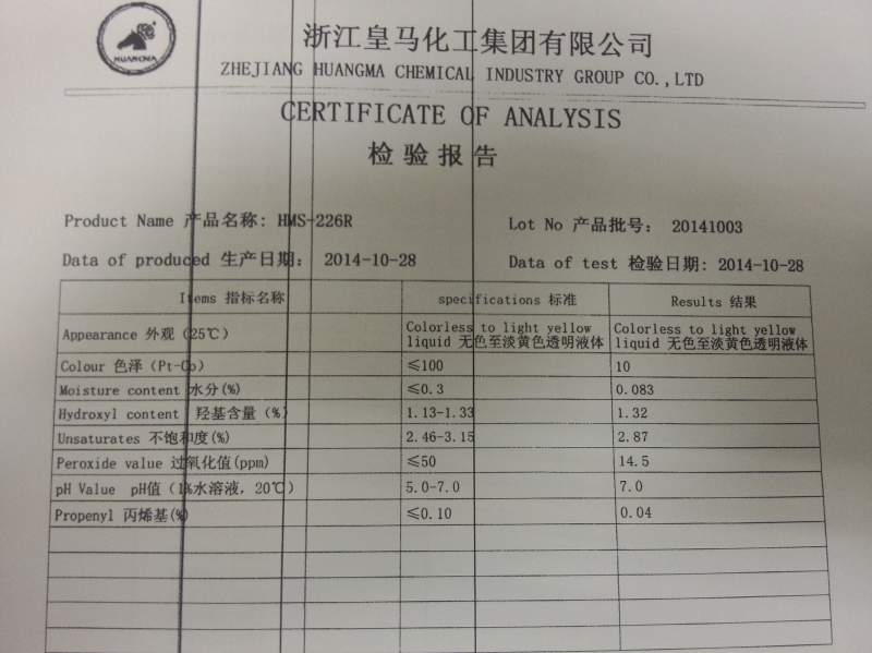 各位大神,两个产品如图,HMX-10我算 的双键含量为3.9mmoL/g,对吗? HMS-226R图中的丙烯基与不饱和度含量不一样,有什么区别吗? 最后,含氢硅油与聚醚反应,聚醚会过量多少倍?求大神帮忙弄清楚,不胜感激! P41104-170003.jpg P41104-170015.jpg |