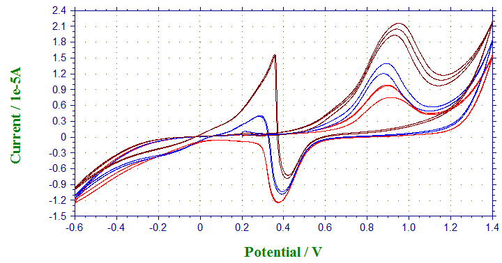 GCE上修饰Au纳米粒子,测葡萄糖得到如图的CV图,求指教!(CV图扫数10mv/s,正电势向右,正电流向上)