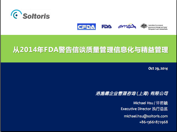 2014.10.29许哲敏—从2014年FDA警告信谈质量管理信息化与精益质量管理