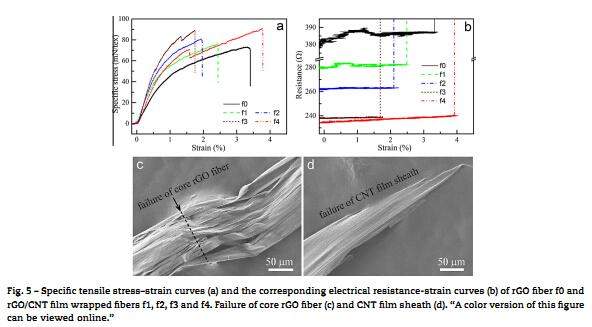 Synthesis and failure behavior of super-aligned carbon nanotube film wrapped graphene fibers,Carbon 72 (2014) 250-256. 影响因子:6.16 摘要:Significant progress has been made in recent years in research on wet spinning and hydrothermal synthesis of graphene fibers. In this paper, we report the relationship between the mechanical performance of graphene oxide (GO) fibers and their processing parameters in wet spinning. With super-aligned carbon nanotube (CNT) film wrapping, the specific strength and electrical conductivity of reduced GO (rGO) fibers were simultaneously enhanced by 22% and 49%, respectively. Thicker CNT filmwrapping of the rGO fiber induces a core–sheath structure; the resulting interfacial debonding and slippage under fiber axial loading were examined. The findings of this study provide guidelines for optimization of high-performance graphene/CNT hybrid fibers. 中文翻译摘要:最近几年在石墨烯纤维的湿纺和水热合成研究领域已经取得了很大进步。在该文章中,报道了在湿纺中氧化石墨烯纤维的机械性能和它们的工艺参数之间的关系。用超整齐的碳纳米管(CNT)薄膜包裹,还原的氧化石墨烯纤维的比强度和导电率分别同时提高了22%和49%。还原的氧化石墨烯纤维的厚CNT薄膜包裹材料引起核心的保护结构;观察了在纤维轴向的负载产生的界面脱粘和滑移。这项研究为优化高性能的石墨烯/CNT混合纤维提供了方向。 想获得更多资源可点击链接http://www.tjdrfk.com/news 图片4.jpg 图片1.jpg 图片2.jpg 图片3.jpg |